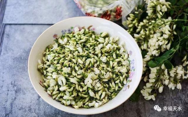 1.将新鲜洋槐花泡洗干净,装盆备用